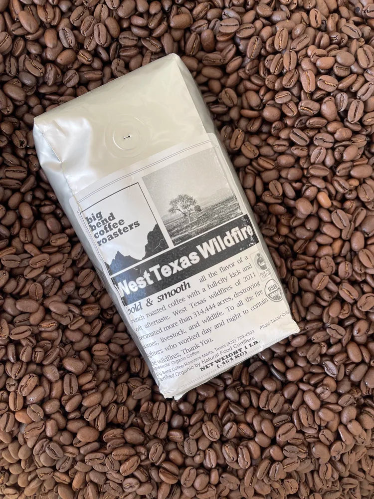 • Fresh roasted coffee from Big Bend Roasters in Alpine. Strong, honest, and meant to be taken slow. 4 roast choices.